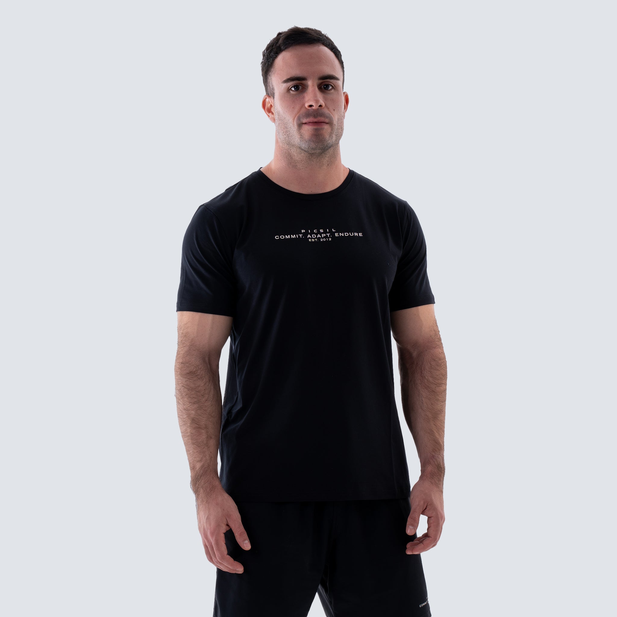 Mantente fresco y cómodo con nuestra camiseta slim fit de tejido técnico transpirable, costuras reforzadas y acabado antibacteriano.